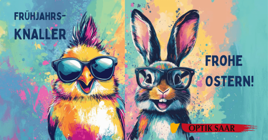 Feiern Sie Ostern mit klarer Sicht! Bei unserer Oster-Aktion bekommen Sie u.a. verspiegelte Sonnenbrillengläser in Ihrer Sehstärke und Gleitsichtgläser zum Osterfest überraschend günstig. Frohe Ostern und eine klare Sicht! Zu den Angeboten Die Angebote sind gültig bis zum 18.04.2026.